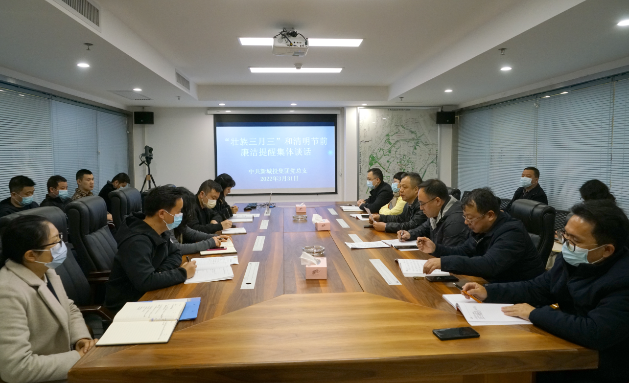 為深入貫徹落實中央、自治區(qū)持之以恒糾“四風(fēng)”樹新風(fēng)部署要求,嚴(yán)防“四風(fēng)”問題反彈回潮,推動移風(fēng)易俗, 2022年3月31日,新城投集團(tuán)召開“壯族三月三”和清明節(jié)前廉潔提醒集體談話會。集團(tuán)黨總支書記、董事長周道林主持會議,并就落實上級要求對集團(tuán)領(lǐng)導(dǎo)班子成員、各部室子公司負(fù)責(zé)人進(jìn)行廉政提醒。