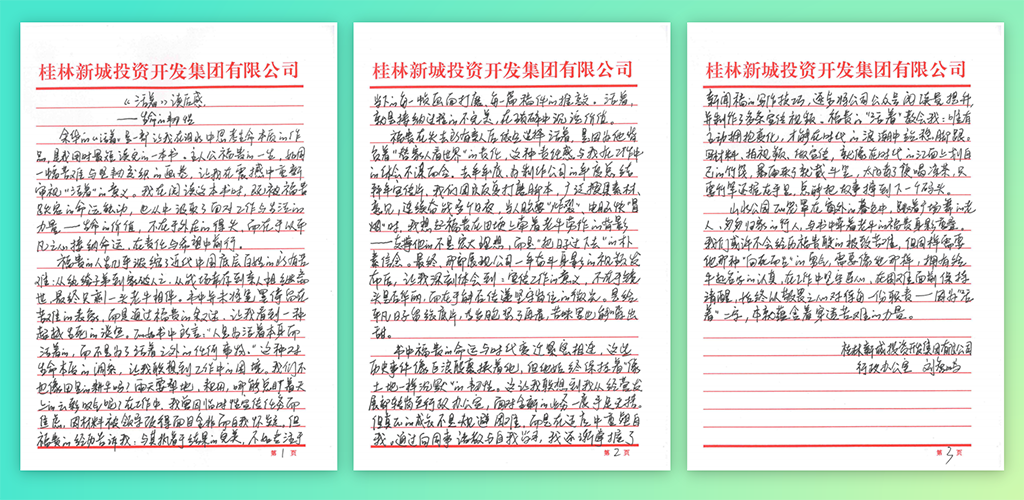 本次活動吸引了廣大員工踴躍參與,共收集作品30余份,他們以飽滿的熱情和高度的責(zé)任感,圍繞讀書主題,結(jié)合自身豐富的閱讀經(jīng)歷與深刻感悟,撰寫出了一篇篇亮點(diǎn)紛呈的文章。這些作品或抒發(fā)對經(jīng)典名著的熱愛,或分享閱讀帶來的成長與啟發(fā),充分展現(xiàn)了新城投集團(tuán)員工積極向上、熱愛閱讀的精神風(fēng)貌,讓整個公司都彌漫著濃郁的書香氣息。