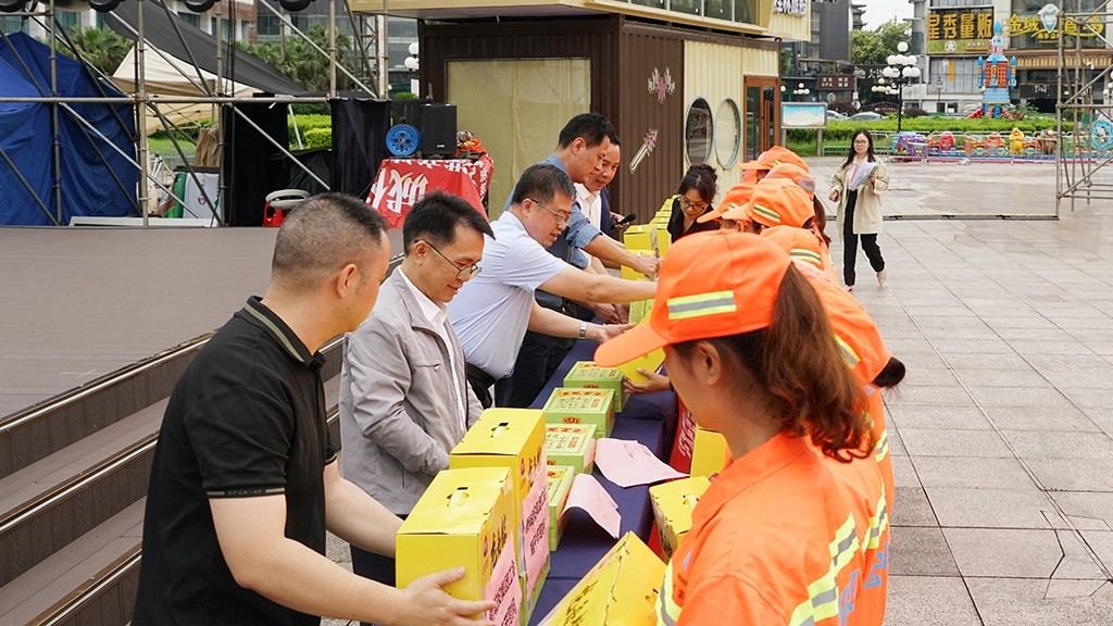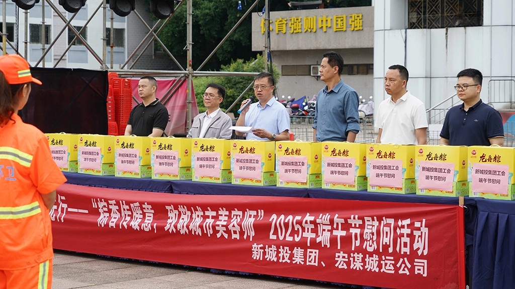 為深入踐行習(xí)近平總書記“以人民為中心”“勞動最光榮”的指導(dǎo)思想,切實把組織關(guān)懷送到基層勞動者心坎上,進一步提升環(huán)衛(wèi)職工隊伍的職業(yè)認同感和幸福感,2025年5月29日端午節(jié)前夕,新城投集團聯(lián)合宏謀城運公司在秀峰區(qū)中心廣場舉辦“粽香傳暖意,致敬城市美容師”端午節(jié)慰問活動。此次活動得到市城管委,秀峰區(qū)政府、城管局、環(huán)衛(wèi)站的大力支持與指導(dǎo)。市城管委黨組成員、副主任蔣毅出席活動。受新城投集團黨委書記、董事長朱毅委托,黨委副書記、紀(jì)委書記、工會主席譚力源代表集團黨委、領(lǐng)導(dǎo)班子及全體職工,向奮戰(zhàn)在環(huán)衛(wèi)一線的干部職工致以節(jié)日問候。