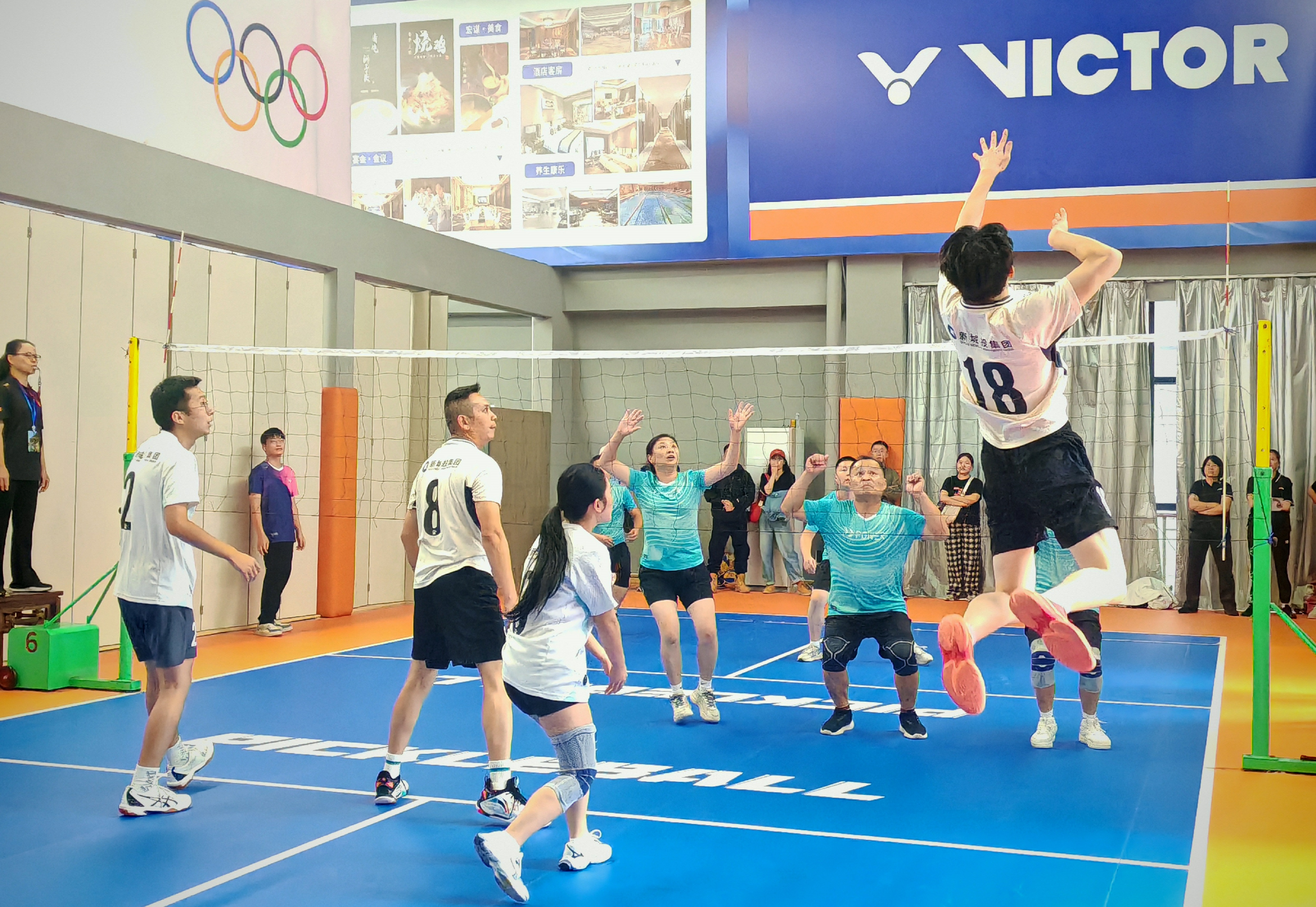 精準有力的發(fā)球?qū)覍掖蚱茖κ止?jié)奏,穩(wěn)健到位的墊球筑牢防守底線,敏捷果斷的攔網(wǎng)成功阻擋對手攻勢,勢大力沉的扣球頻頻斬獲關(guān)鍵得分。每一次巧妙傳球、每一輪精彩得分,都讓現(xiàn)場氣氛瞬間升溫,集團職工組成的拉拉隊立刻響起“新城投,加油!”的助威聲,吶喊聲鏗鏘有力、此起彼伏,與隊員們拼搏的身影相互映襯,共同營造出文明有序、熱烈高漲的賽事氛圍。