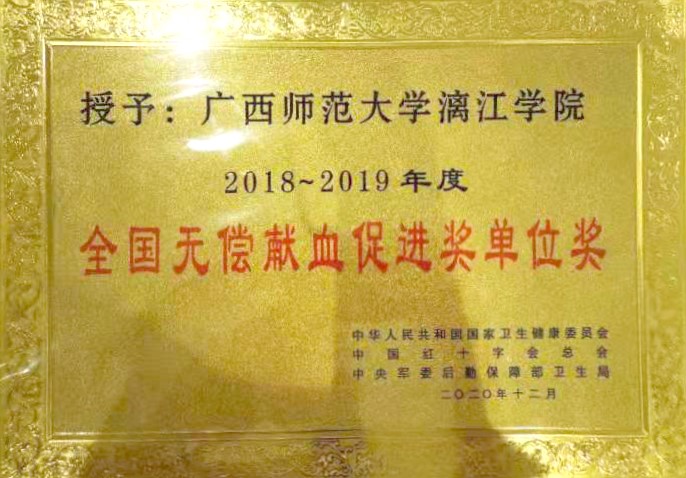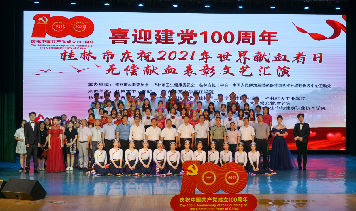 6月9日,由桂林市獻(xiàn)血委員會(huì)、桂林市衛(wèi)生健康委員會(huì)、桂林市紅十字會(huì)、中國人民解放軍聯(lián)勤保障部隊(duì)桂林聯(lián)勤保障中心衛(wèi)勤處主辦,桂林市中心血站、廣西師范大學(xué)漓江學(xué)院承辦的“喜迎建黨100周年桂林市慶祝2021年世界獻(xiàn)血者日無償獻(xiàn)血表彰文藝匯演”活動(dòng)在漓江學(xué)院召開。漓江學(xué)院獲得全場(chǎng)唯一“全國無償獻(xiàn)血促進(jìn)獎(jiǎng)單位獎(jiǎng)”。