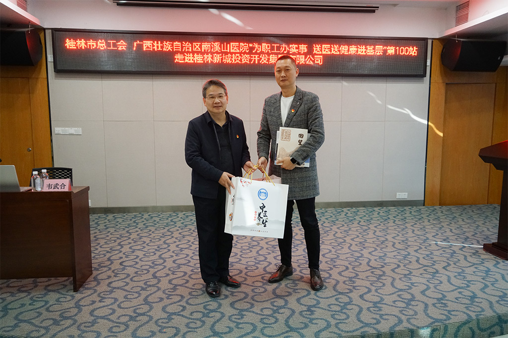 柳宏林對(duì)市總工會(huì)對(duì)活動(dòng)的全力支持與指導(dǎo),對(duì)新城投集團(tuán)提供周全的保障服務(wù)工作表示衷心的感謝,并贈(zèng)送醫(yī)院文化建設(shè)叢書(shū)、中醫(yī)養(yǎng)生禮盒。他指出,健康問(wèn)題是重要的民生問(wèn)題,也是工會(huì)組織關(guān)心職工的一項(xiàng)重要工作內(nèi)容,希望今后雙方加強(qiáng)溝通交流,互促共進(jìn),共同發(fā)展。